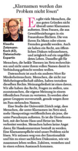 Eine Journalistin der Zeitschrift „Meins“ kontaktierte mich am 24. Februar, ob ich eine Expertinnenmeinung zur Klarnamenpflicht für die kommende Ausgabe schreiben könnte. Sie gab mir eine Länge von 500 Wörtern vor und ich schrieb einen Artikel in dieser Länge, für den ich im Übrigen kein Geld bekomme.
