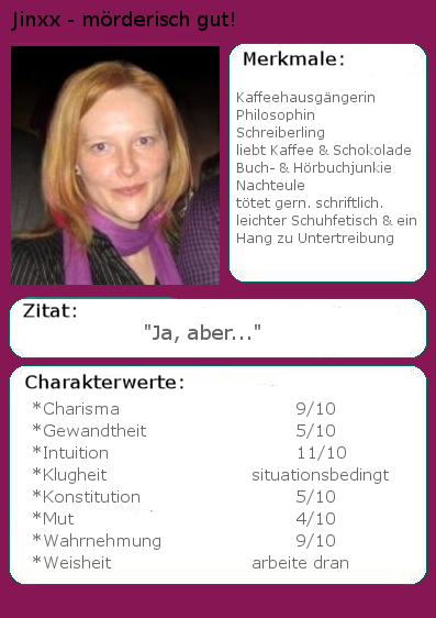Ehrlich gesagt, spiele ich keine Rollenspiele, aber mein Freund ist da leidenschaftlich involviert und hatte großen Spaß daran, mich da auch mal mit zu konfrontieren. Konstitution hat gestern übrigens +1 bekommen, nachdem wir mein Motorrad den Berg hochgeschoben haben! *lach*