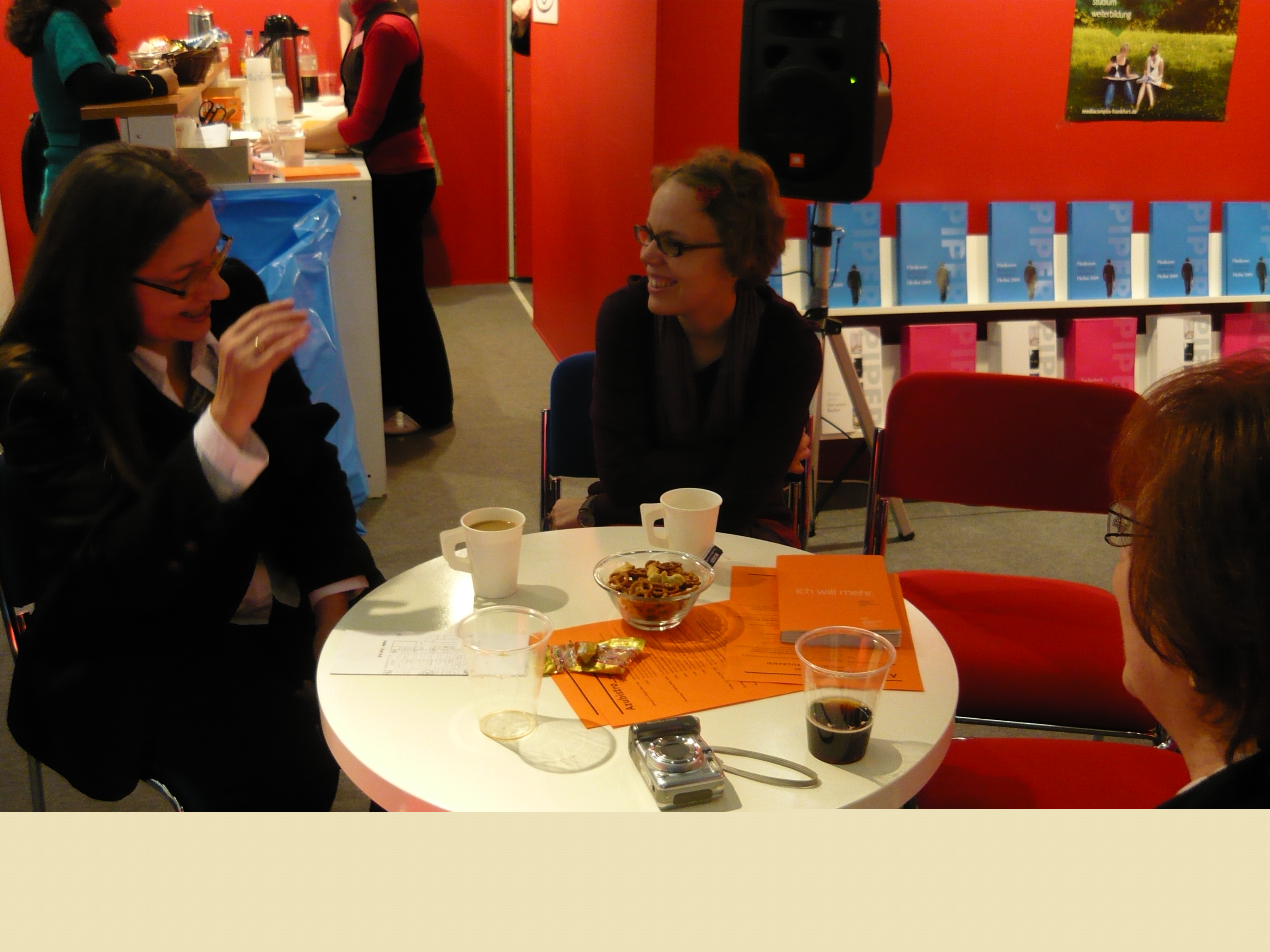 Viel netter war dafür mittags das Textinen-Treffen im Azubistro in Halle 4.0. Wir waren zwar nur zu dritt (+ meine Mama, die so gerne mal die Frankfurter Buchmesse sehen wollte und den Messetrubel im Übrigen auch gut überstanden hat), aber es war wirklich sehr nett, mal wieder etwas zu „netzwerken“.