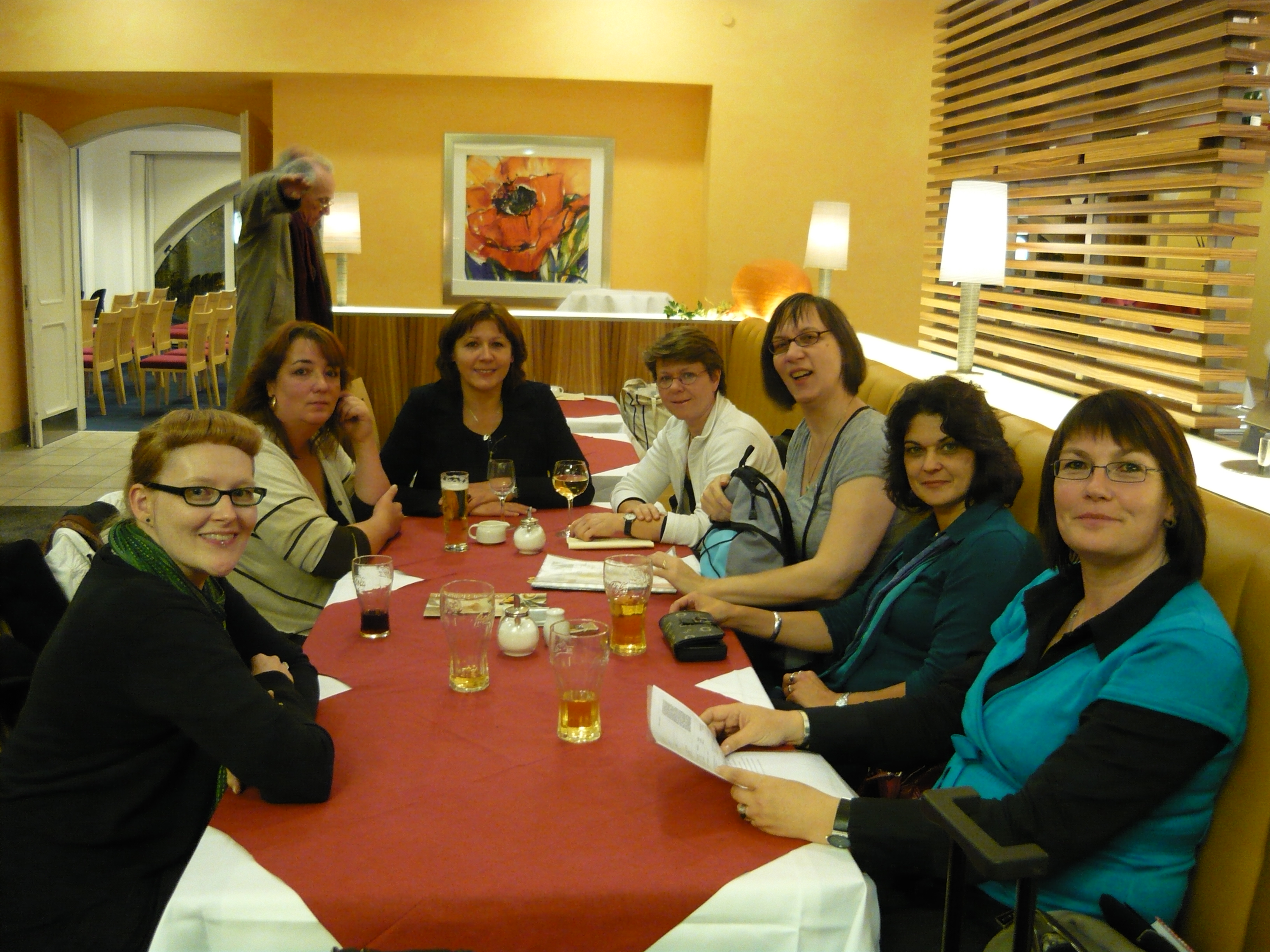Und am Abend gab es noch ein Treffen der Mörderischen Schwestern im Cosmopolitain im Frankfurter Hauptbahnhof, das wirklich sehr, sehr nett war. Ich habe mich riesig gefreut, einige der Namen, die ich ja schon von der Mailingliste kenne, jetzt mit passenden Gesichtern ausstatten zu können. Und viel gelacht haben wir… Meine „mörderische Mutter“ (aka „mein Alibi für den Abend“ 😉 ) war natürlich auch noch dabei und ganz entzückt von den Krimiautorinnen.