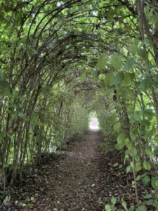 Von wegen Haselhecke! Was aus der Entfernung wie eine Hecke aus Haselbüschen aussieht, ist tatsächlich ein langer Gang aus Haselbüschen – und sofort mein Lieblingsplatz auf dem Gelände