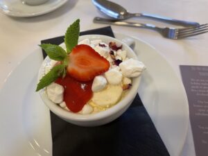 Foto einer Tasse mit „Eaton Mess“, einem Nachtisch aus Meringue, Erdbeeren und Vanillecreme