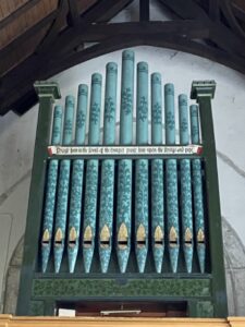 Foto der grün bemalten Orgelpfeifen innerhalb der Kirche