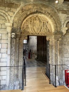 Foto des ganzen in Stein gemeißelten Türrahmens mit mystischen Motiven aus dem Jahr 1150