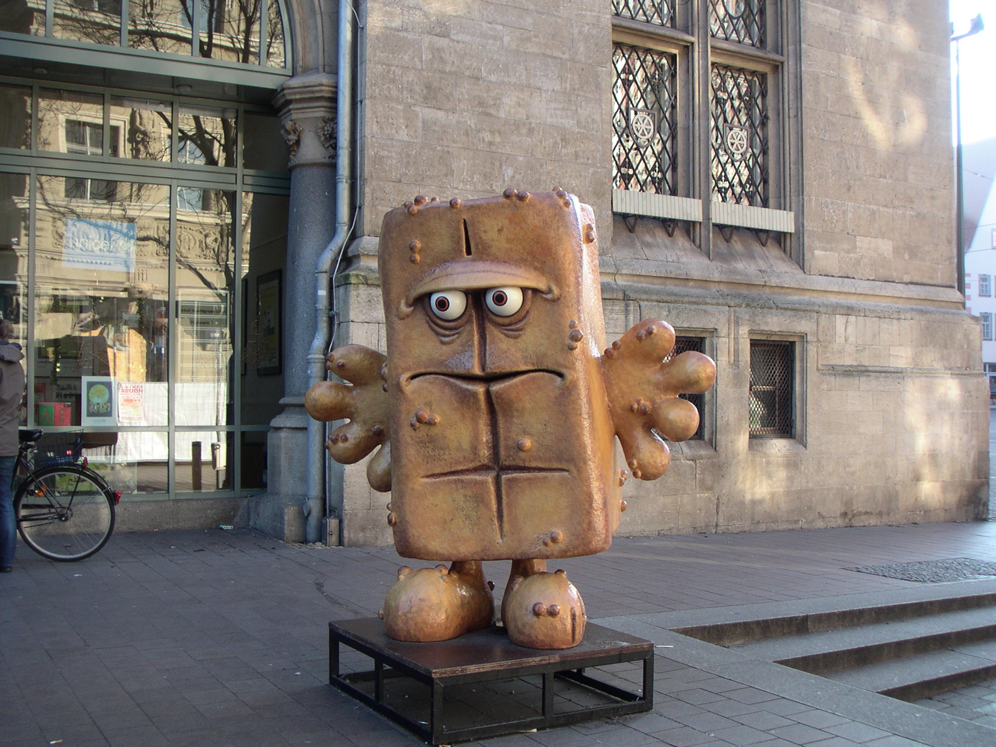 Es klingt fast zu surreal um wahr zu sein: Hausbesetzer haben im thüringischen Erfurt die zwei Meter große „Bernd das Brot“-Statue vor dem Rathaus mitgehen lassen. Offenbar weil sie das Gelände einer ehemals in NS-Verbrechen verwickelten Firma nicht verlassen möchten und die Alternativgebäude, die ihnen die Stadt Erfurt angeboten hat, nicht wollen. So steht es zumindest heute in der Hildesheimer Allgemeinen Zeitung.