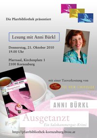 Den delikaten Abschluss bietet die Lesung von Autorenkollegin Anni Bürkl aus ihrem zweiten Teekrimi mit Berenike Reuther; dazu haben die Damen von der Pfarrbibliothek auch keine Mühe gescheut und wir können uns dabei auf eine exklusive Teeverkostung freuen!