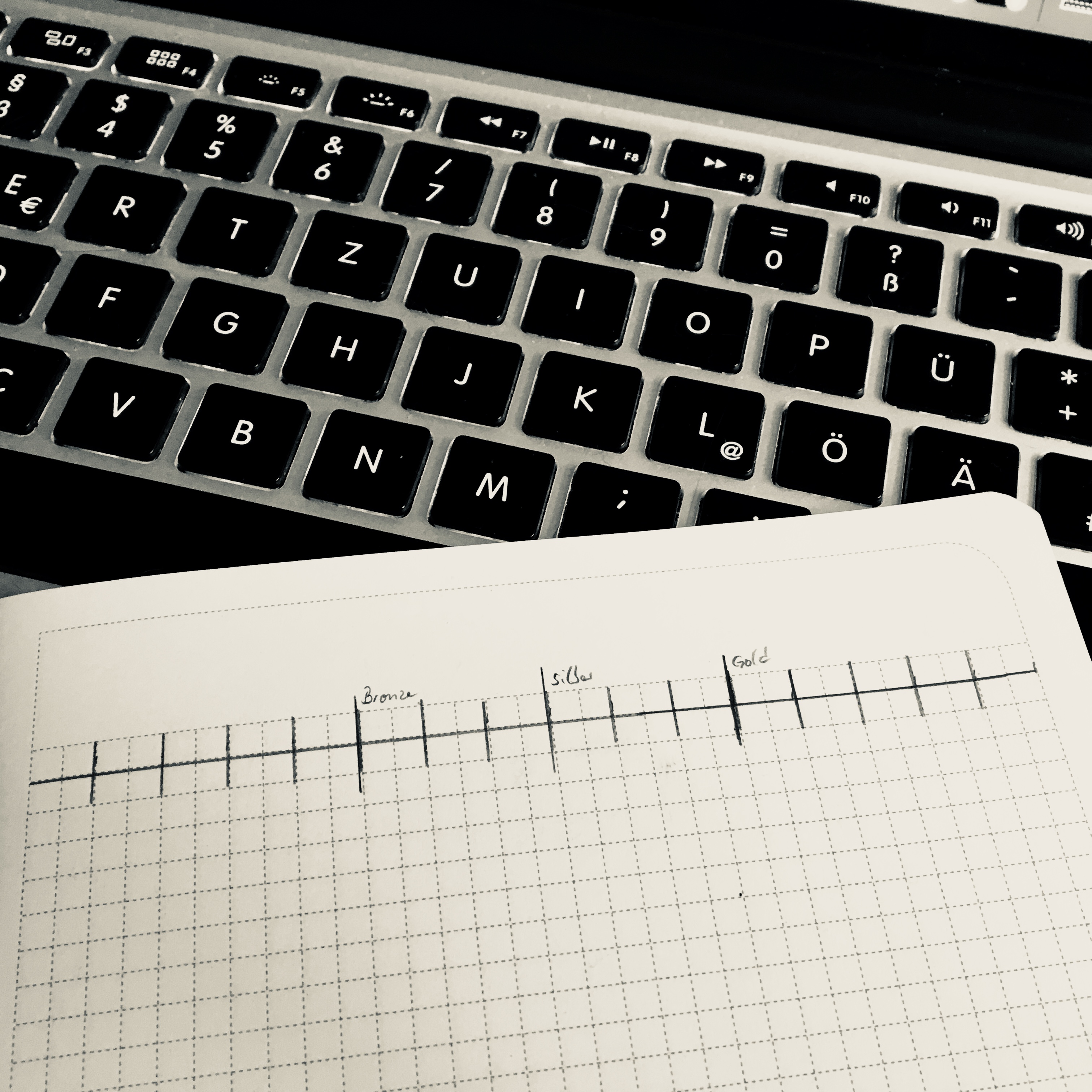 Jahresplanung für AutorenJedes Quadrat von 4 Kästchen gleicht einer Stunde und jedes Einzelkästchen entsprechend 15 Minuten. Zum Abhaken. Das kann man sich entweder jede Woche in den Kalender zeichnen oder kleben oder auch eine ganze Zahresübersicht damit basteln und noch mit „Bronze“, „Silber“ und „Gold“ versehen. Alles über 5 Stunden ist schonmal Bronze, über 8 Stunden Silber, über 11 Stunden Gold.