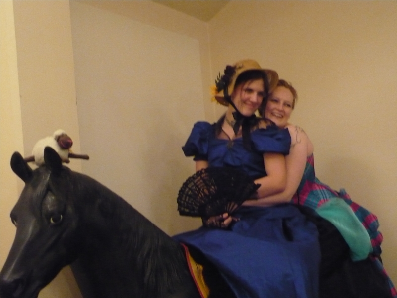 Hannes beim Historischen Ball in KorneuburgHannes war dann natürlich mit beim Ball und völlig fasziniert, dass die Leute alle so komisch aussahen! Aber er fand es dann nach einer Weile doch sehr hübsch und nach etwas Wein war er auch sehr redselig. Nur tanzen wollte er partout nicht. Aber als er das Pferd entdeckt hat, war er mittenmang dabei! Er hat sich sogar ganz oben (!) draufgetraut, als er merkte, dass das Pferd gar nicht echt war… Hannes und das falsche Pferd