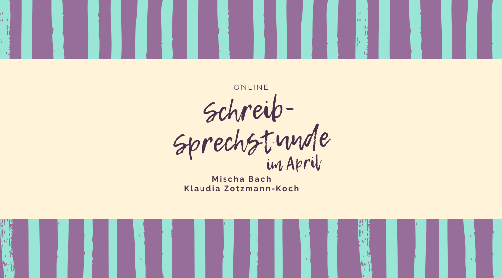 Wir – Klaudia und Mischa, beide Autorinnen, beide auch Schreibdozentinnen, Lektorinnen und Coaches – haben vermutlich nicht auf alles eine Antwort, aber vier offene Ohren, ziemlich viel Erfahrung und am Dienstag, den 26.04. von 14:00 Uhr bis 15:30 Uhr Zeit für eine kleine Gruppe an Interessierten.