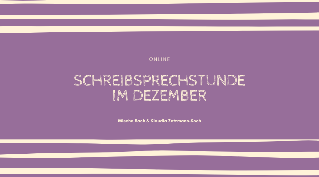Wir – Klaudia und Mischa, beide Autorinnen, beide auch Schreibdozentinnen, Lektorinnen und Coaches – haben vermutlich nicht auf alles eine Antwort, aber vier offene Ohren, ziemlich viel Erfahrung und am Mittwoch, den 15.12. von 15:00 Uhr bis 16:30 Uhr Zeit für eine kleine Gruppe an Interessierten.
