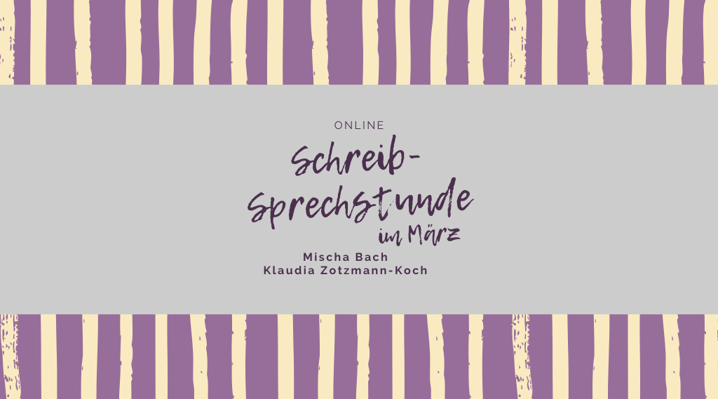 Wir – Klaudia und Mischa, beide Autorinnen, beide auch Schreibdozentinnen, Lektorinnen und Coaches – haben vermutlich nicht auf alles eine Antwort, aber vier offene Ohren, ziemlich viel Erfahrung und am Dienstag, den 29.03. von 14:00 Uhr bis 15:30 Uhr Zeit für eine kleine Gruppe an Interessierten.
