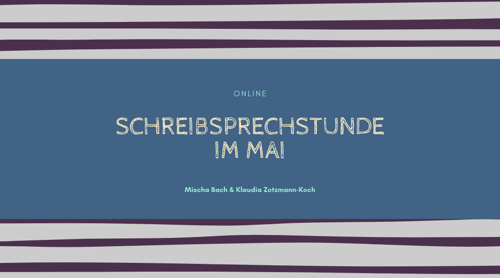 Wir – Klaudia und Mischa, beide Autorinnen, beide auch Schreibdozentinnen, Lektorinnen und Coaches – haben vermutlich nicht auf alles eine Antwort, aber vier offene Ohren, ziemlich viel Erfahrung und am Montag, den 31.05. von 17:00 Uhr bis 18.30 Zeit für eine kleine Gruppe an Interessierten.