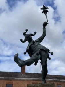 Foto der Jester-Statue am Eingang der Henley Street in der Nähe von Shakespeare’s Birthplace